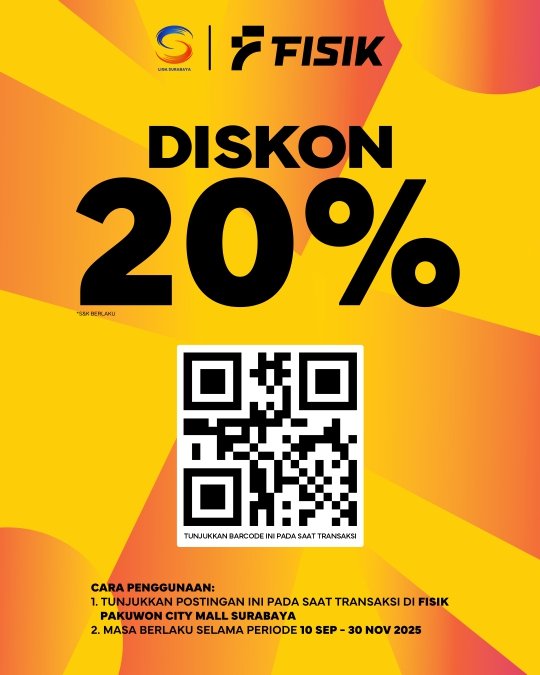Khusus member & peserta Liga Surabaya. Tunjukkan poster/QR ini saat transaksi di FISIK Pakuwon City Mall Surabaya.